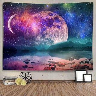 Tushelia 星空 タペストリー 銀河 タペストリー 宇宙 タペストリー 星の中の月 星 夜 タペストリー 壁掛け ユニバース サイケデリックタペストリー リビングルーム ベッドルーム ホームデコレーション M-W59.1' × H51.7'