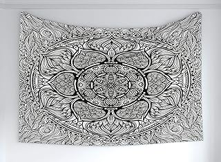 Ambesonne エスニック タペストリー 曼荼羅風アートワーク 手描き ペイズリー柄 ボヘミアン ネイティブ ファブリック 壁掛け装飾 寝室 リビングルーム 寮 60インチ x 40インチ ブラックとホワイト