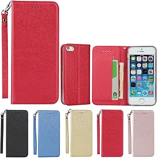Eastwave iPhone SE 第1世代 ケース iPhoneSE(2016)iPhone 5 iPhone 5s 通用 ケース Case 手帳型 ストラップ付き 高質PU皮革 明るい色 内蔵マグネット 携帯カバー カードポケット スタンド機能 レッド