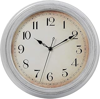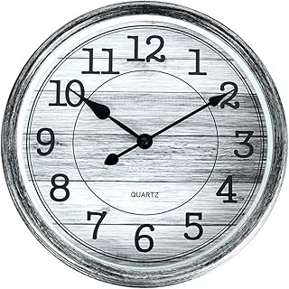 JoFomp ヴィンテージ壁掛け時計 13インチ 静音 カチッとしないクォーツ 電池式壁掛け時計 レトロスタイル 装飾壁時計 自宅 リビングルーム キッチン 寝室 オフィス用 (シルバーグレー)