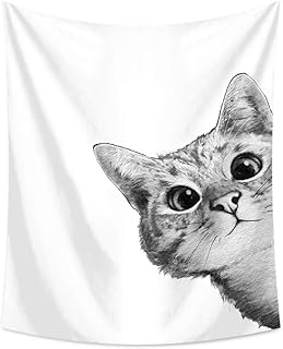 おしゃれ 壁掛け タペストリー 動物 プリント ファブリック装飾用品 北欧 アートプリント 壁掛け布 多機能装飾用品 模様替え 家庭飾り ビーチタオル (白·猫, 130x150cm)