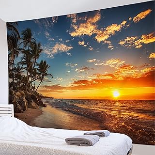 LB ビーチ風景 タペストリー 椰子の木 夕陽 インテリア おしゃれ 壁掛け 夕方 夕暮れ ファブリック装飾用品 モダン 多機能 部屋 窓 個性ギフト 新居祝い 布 200x150cm
