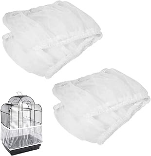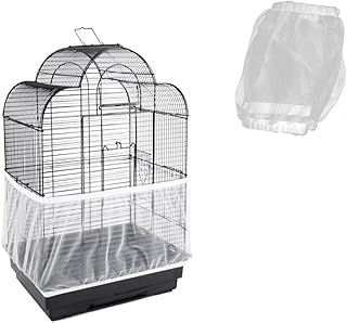 鳥用ケージカバー 鳥かご清潔防塵カバー エサ飛び散り防止 床を清潔に保つ ナイロンメッシュ 光を遮断しない 通気性 伸縮性 丸洗え 鳥かご アクセサリー(ホワイト)