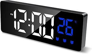 AMIR 目覚まし時計 デジタル目覚まし時計 寝室用 温度表示 明るさ調節可能 アラーム3点 音声コントロール スヌーズ 12/24H 子供用 ベッドサイド時計