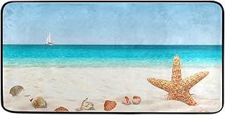 キッチンラグ シェルとヒトデ 砂浜のドアマット バスラグ ホームデコフロアマット ノンスリップカーペット キッチン リビング 寝室用 39 x 20インチ