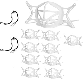 ZZWAI ブラケット インナー フレーム【10枚 + 2枚ストラップ 】 2021年最新版 マスクフレーム マスクブラケット ひんやりブラケット 夏用 スク 息苦しくない インナー フレーム ブラケット 快適 サポート 口紅の保護 メイク崩れ防止 柔らかい 呼吸空間増やす 柔らかい通気性 (ホワイト)