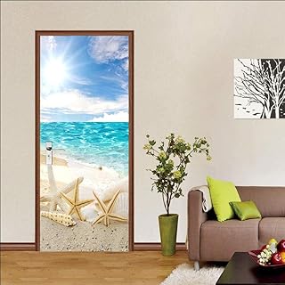 3Dドアステッカービーチ自己粘着壁画家の装飾ウォールステッカー寝室のリビングルーム取り外し可能なポスターアートステッカー-95x215cm