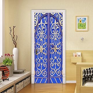 3dドアステッカーブルーアイアンドア自己接着壁画家の装飾壁ステッカーアートステッカー寝室リビングルーム取り外し可能なポスタードアステッカー-95x215cm