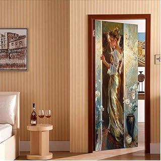 3Dドアステッカー女性自己粘着壁画家の装飾ウォールステッカー寝室のリビングルーム取り外し可能なポスターアートステッカー-95x215cm