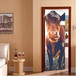 3Dドアステッカー牛自己粘着壁画家の装飾ウォールステッカー寝室のリビングルーム取り外し可能なポスターアートステッカー-95x215cm